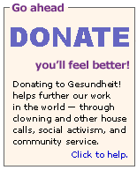 I could feel frustrated, even sad, that the hospital is still unbuilt. However, in the long run it may prove to have been a very positive time line. After 33 years, we have built a much larger, more diverse, more intelligent, more globally influential model than we ever dreamed of in those first 12 incubating years. Our global impact has affected far more patients' lives and inspired more social change than if we had gotten our funding early on. My failure at fund raising has forced me and our evolutionary staff and friends to expand in every direction and meet a quality and quantity of people that make our greater team of friends and contacts number in the thousands in almost every area of endeavor; especially healing, the arts, and social change. Gesundheit! has indeed become a global mover and shaker active in forty or more countries, expanding beautifully all the time.