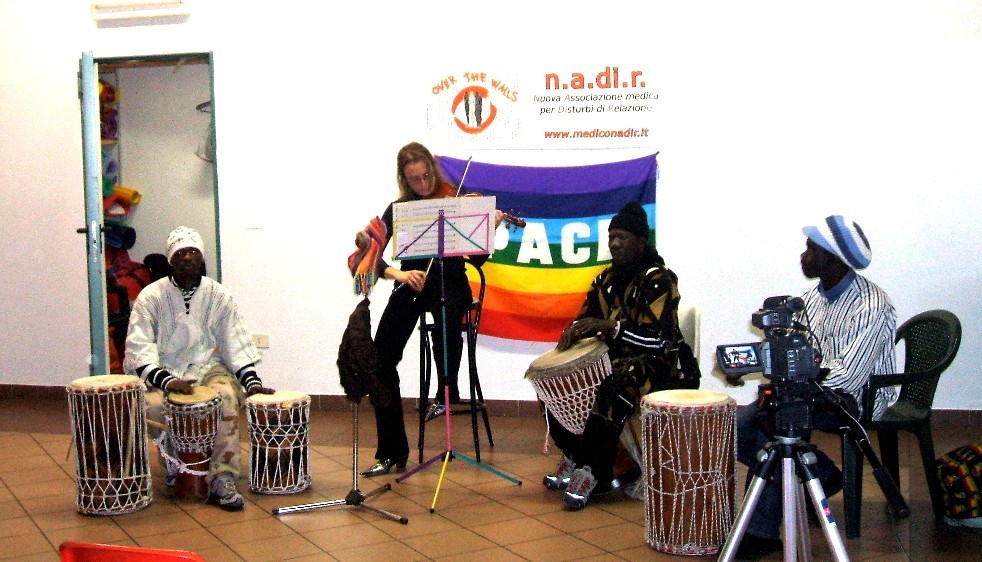 | Ringraziamo per la serata che Loris Cresti del Bar della Rotonda ha organizzato a sostegno delle attività promosse da N.A.Di.R. - ringraziamo, inoltre i partecipanti ed i magnifici interpreti musicali che ci hanno allietati: Jambè Rythe Groupe alle percussioni ed Alessandra Mirabelli al violino. L'evento è stato ripreso dalle telecamere di N.A.Di.R.informa e anche chi in quella serata non ha potuto essere presente, presto potrà godere lo spettacolo dal web... credete ... un'interpretazione della "Follia" di Corelli di altissimo livello!!Siamo convinti e ...i fatti continuano a dimostrarlo che ... la multiculturalità sia GIA' il nostro presente e che sia capace di offrirci il meglio che l'essere umano possa esprimere!"Quando si avvicina uno straniero e noi lo confondiamo con un nostro fratello,ponendo fine a ogni conflitto... ecco,questo è il momento in cui finisce la notte e comincia il giorno." |