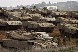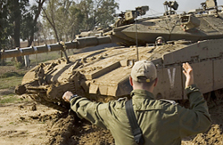 Sul fronte militare si attende ancora con drammatica tensione l'invasione terrestre della Striscia. Decine di carri armati sono schierati lungo il confine a scopo per ora intimidatorio, ma, già nella tarda mattinata di lunedì 29, giunge notizia che alcune unità di commando israeliane stanno già operando dentro la striscia di Gaza. Operazioni mordi e fuggi allo scopo di colpire i miliziani intenti a sparare razzi, marcare obiettivi chiave per successivi attacchi aerei e spianare la strada a una prossima vasta incursione di mezzi blindati. Lo rivela il sito legato all'intelligence israeliana Debkafile. Nelle ultime ore, inoltre, l'aviazione israeliana ha bombardato il sud della Striscia, il territorio vicino al confine con l'Egitto, per distruggere i tunnel usati dai palestinesi per il contrabbando. Sempre secondo Debkafile, in questi raid sono state usate le bombe teleguidate anti-bunker Gbu-39, recentemente acquistate dagli Stati Uniti. Sempre attorno al valico di Rafah, infuriano le polemiche dopo che, ieri, gli egiziani avevano accusato Hamas di non consentire il passaggio dei feriti. Oggi il partito islamico replica sostenendo che sono stati gli egiziani a impedire la riapertura del passaggio di confine. Lo ha dichiarato il portavoce di Hamas, Sami Abu Zuhri, secondo cui “i governi arabi non stanno facendo nulla per la popolazione di Gaza, assistiamo solo a condanne generiche, ma non hanno nemmeno aperto il valico di Rafah”.