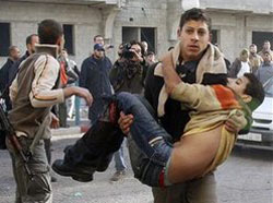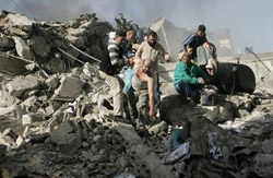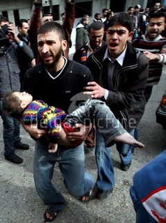 Sfilano timorosi con gli occhi rivolti in alto, arresi ad un cielo che piove su di loro terrore e morte, timorosi della terra che continua a tremare sotto ogni passo, che crea crateri dove prima c'erano le case, le scuole, le università, i mercati, gli ospedali, seppellendo per sempre le loro vite. Ho visto carovane di palestinesi disperati sfollare da Jabiliya, Beit Hanoun e da tutti i campi profughi di Gaza, ed andare ad affollare le scuole delle Nazioni Unite come terremotati, come vittime di uno tsunami che giorno per giorno sta inghiottendo la Striscia di Gaza e la sua popolazione civile, senza pietà, senza alcuna minima osservanza dei diritti umani e delle convenzioni di Ginevra. Soprattutto senza che nessun governo occidentale muova un solo dito per fermare questi massacri, per inviare qui personale medico, per arrestare il genocidio di cui si sta macchiando Israele in queste ore.