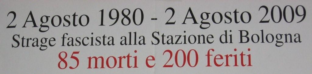“29 anni fa, in questa stazione, fu perpetrato un orrendo crimine: una bomba collocata da terroristi fascisti causò 85 morti e 200 feriti... Anni di indagini e processi meticolosi hanno permesso di individuare, in parte, chi usò la violenza e la crudeltà, esseri umani che hanno concepito e voluto quella carneficina.