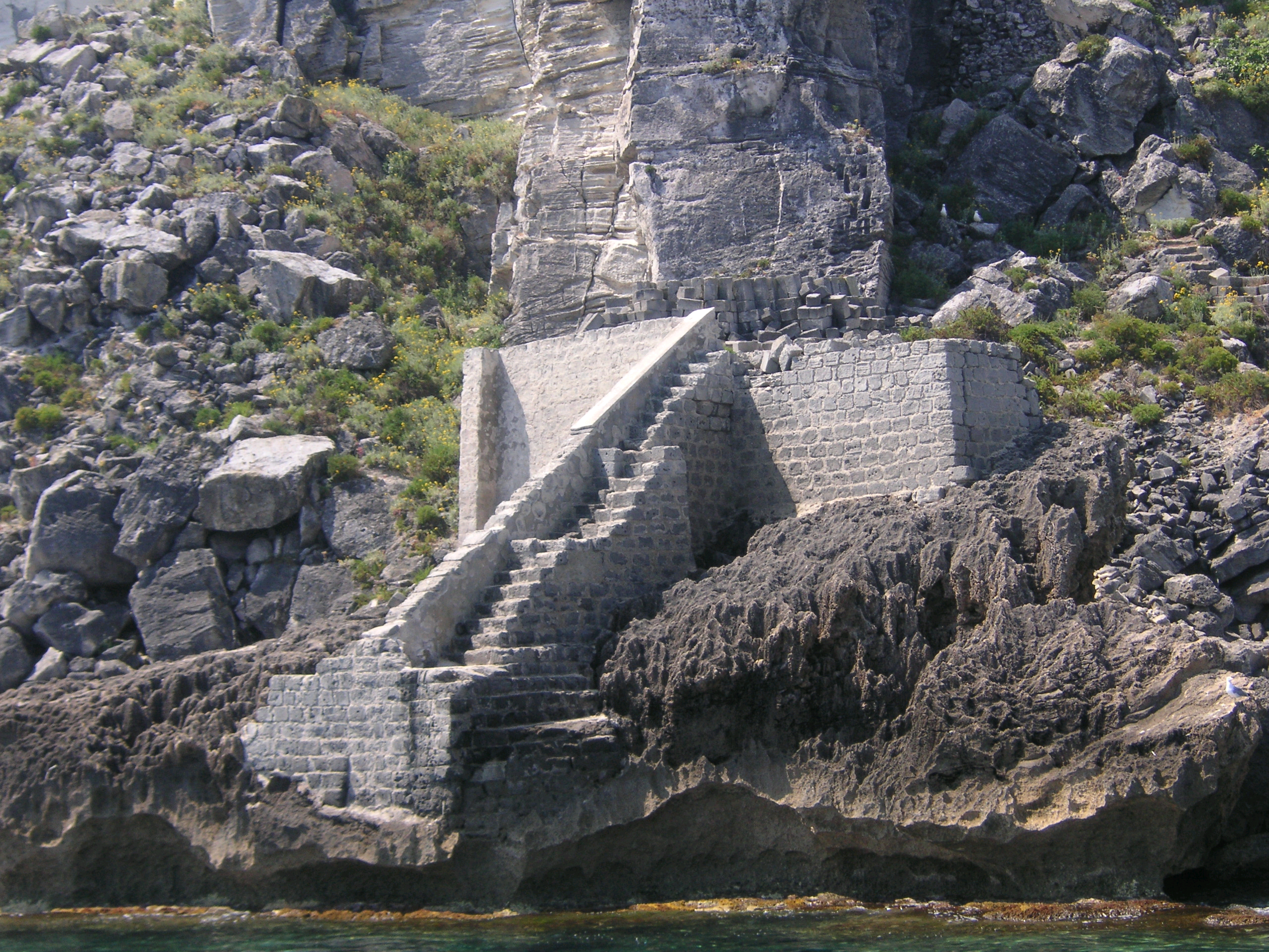 Ancora oggi sia da terra che dal mare si possono vedere i resti di questi scivoli, anch’essi di pietra, di imbarco del tufo chiamati “scari” dai quali si facevano scendere i blocchi fino alle imbarcazioni.
