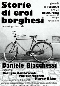 NADiRinforma: Daniele Biacchessi (scrittore e vice caporedattore di Radio24) giovedì 11 febbraio '10, presso il Cinema Perla ci ha raccontato "Storie di eroi borghesi". Tre storie esemplari: Giorgio Ambrosoli, il commissario liquidatore della Banca Privata Italiana del finanziere Michele Sindona, ucciso a Milano dalla mafia politica, Walter Tobagi, editorialista ed inviato del Corriere della Sera, assassinato dal gruppo terroristico Brigata 28 marzo e Marco Biagi, giuslavorista colpito dalle Brigate Rosse.