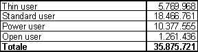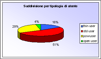 La quantità complessiva di PC “ client ” è stata infine clusterizzata per tipologia di utente suddividendo il numero totale di PC soggetti a licenze d'uso in cinque cluster : (come da Tabella 2).