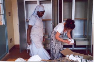 Il contenuto del container di aiuti umanitari destinati all'ospedale di Mivo provenienti da strutture ospedaliere, da personale sanitario e da cittadini di buona volontà sono state visionate, classificate e trasportate negli appositi magazzini da me e da mio marito durante il nostro soggiorno.